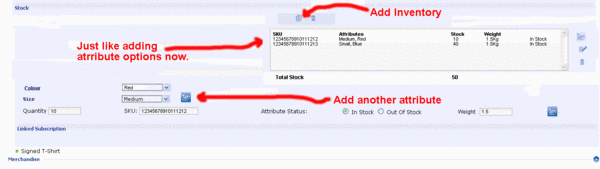 3.) Merge Attribute Inventory Control and Stock and rename as Inventory so that an admin can set the exact stock levels. For example: